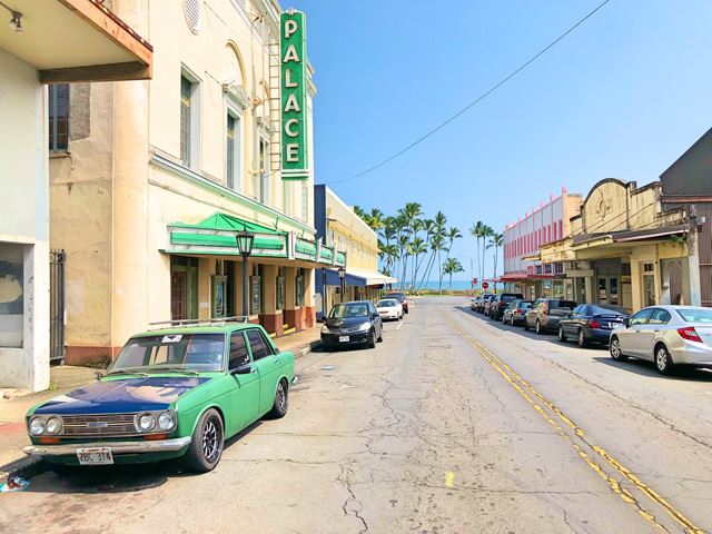 コナから車で約2時間の所にある大きな街ヒロ。コナのような華やかさではなく、昔懐かしいノスタルジックな建物が並ぶ街並み。