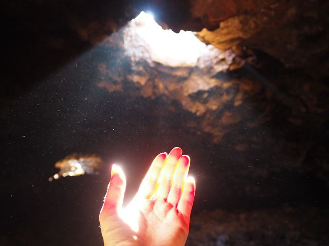 日本のテレビでも紹介されており、今話題のホットスポット「オーラの泉」。マウナラニリゾート内にあるマウナラニヒストリックパークの駐車場から溶岩の中を歩いて約15分ほどの所に洞窟があります。