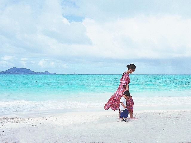 ご本人コメント(抜粋) Kailua Beach,Hawaii .子連れハワイについて色々質問を受けているので、少しでも参考になれば嬉しいです. この時かなり風強かったけど、初めての海楽しんでたよ