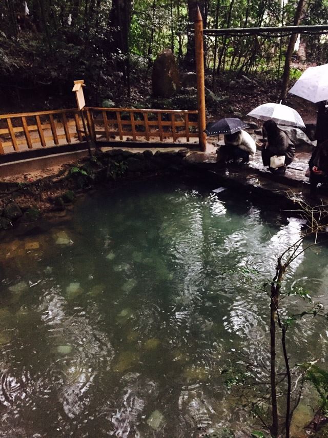 玉造温泉駅から松江駅までは電車で移動し、松江駅からバスで八重垣神社へ。縁結びで有名な「八重垣神社」にある「鏡の池」で良縁占いをしました。
