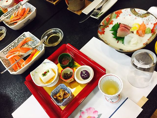 宿泊先の「玉造温泉 出雲神々縁結びの宿 紺家」。夕食にも蟹が入っていて美味しかったです。