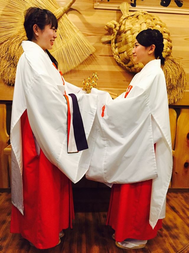 紺家さんは先着順で無料で「巫女服」の体験サービスをおこなっていて、普段着ないような巫女服にテンションがあがりました!