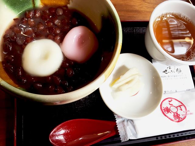 参道入り口の手前にある「ご縁横丁」で食べたぜんざい餅が美味しかったです。体も温まるのでおススメです。