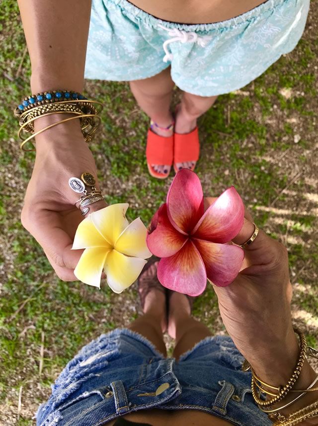 ハイビスカスやプルメリアもあちこちに咲いていて、落ちてるのを見つけるとこんな風に写真を撮って楽しみました。
