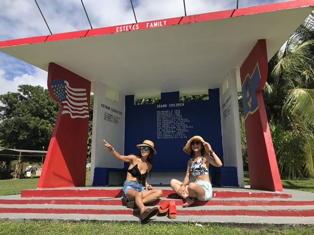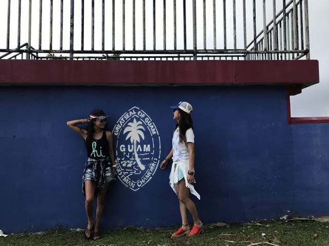 ここでは曇り空とモヤでパゴ湾を見渡せるという景色は撮れず、展望台に書かれたグアム旗柄の前で記念撮影だけで終了。ちなみにグアム島はアメリカではあるけれど、まだ州とは認められていなくて「準州」という位置付けなんですよ。