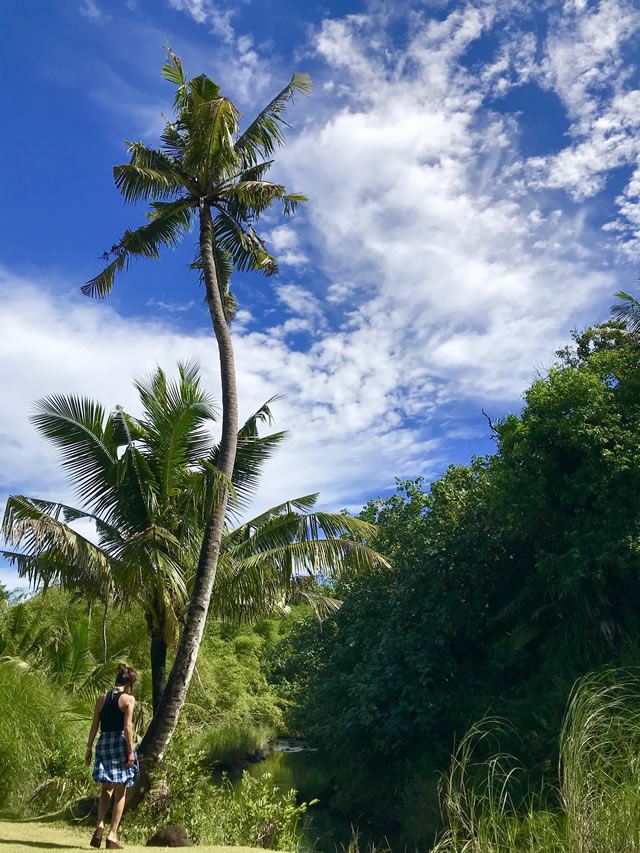 力強いのに優しい滝の水音、周りに生い茂るヤシや木々の鮮やかなグリーン、そして太陽と青空・・・