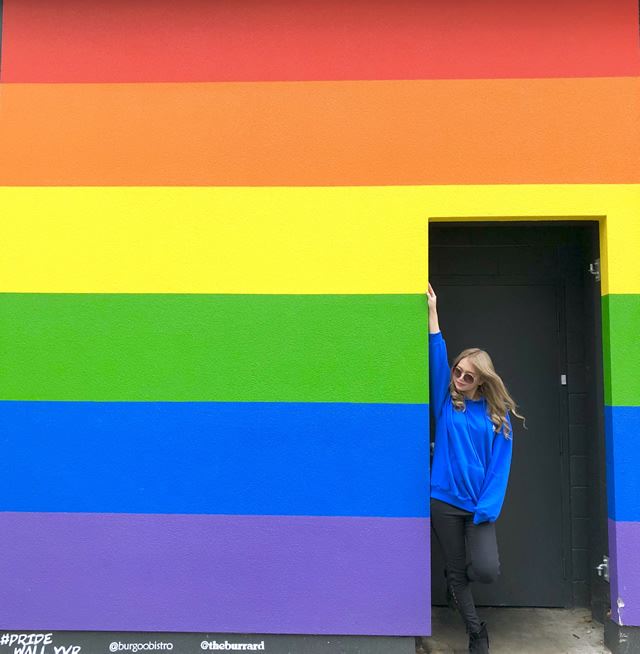 Granvilleストリート 7 の位置で見つけました。他で見たことのないようなウォールアートで可愛いです。バラードホテルの裏には虹色で目立つ外壁を見つけました!