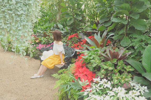 お天気が悪かったらどうしようと、雨の日でもOKなフォトスポットを探していて見つけたのがこのFitzroy GardensにあるThe Conservatoryという植物園。その名の通り温室なので、あまり長くいるのはおすすめできないけれど、お花や緑など植物に囲まれてリラックスできました。