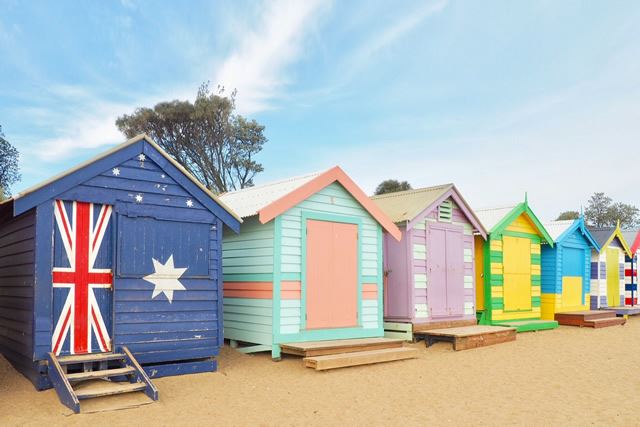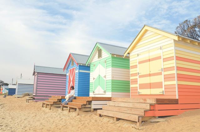 アクセス:街の中心Flinders Street StationからBrighton Beach Railway Stationまで電車で20分程度、駅から15分ほど歩くと海岸沿いにカラフルな小屋が見えてきます。
