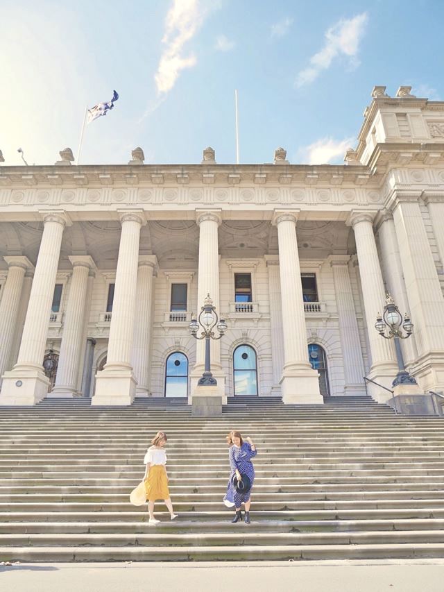 近くのアイスクリーム屋さんを目指してこのエリアを訪れたのですが、州議事堂がとても素敵な佇まいだったので思わず写真を撮ることに。ウエディングフォトを撮る方々もいたので、メルボルン在住の方々にとってもフォトジェニックな場所のようです。