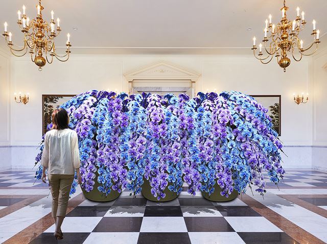 パレス ハウステンボスで現在開催中の「国内最多200品種 大胡蝶蘭展」がさらにバージョンアップ!大人気の色鮮やかな「蘭のトンネル」をはじめ、1月13日(土)スタートの蘭が溢れ出す「青い胡蝶蘭の滝」は息を呑む美しさ。