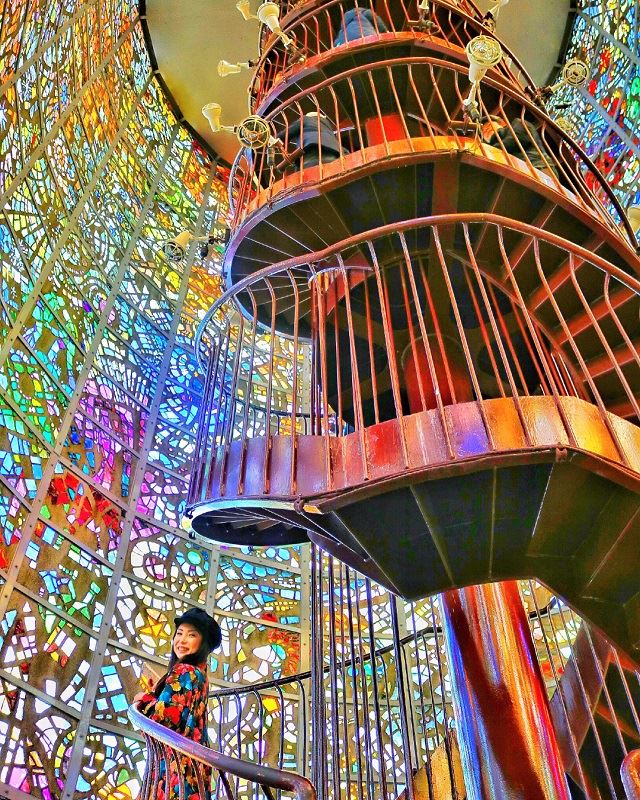 写真提供:@u0naganさんご本人コメント(抜粋) 📍箱根【彫刻の森の美術館】〜幸せを呼ぶシンフォニー彫刻〜ステンドグラス一面でめっちゃ幻想的..これこそフォトジェニックスポット..ゴープロ持っていけば良かった、、と言う後悔..こーいう時はいるなー 一眼じゃ上まで入らん..ここ人が階段登るから、いい写真撮るの苦労した