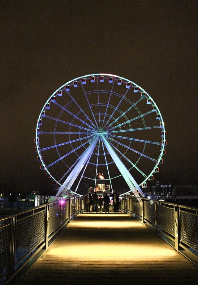 昼間は展望台からモントリオールの街を、夜は観覧車から夜景を楽しみました。この観覧車は今年の9月に出来たばかりで高さは60m、カナダで一番高い観覧車です。
