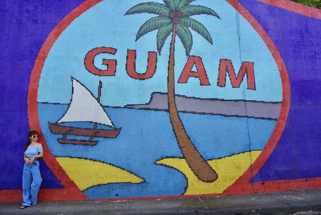 Guamの旗をモチーフにしたウォールアート!これ撮影するのめっちゃ大変でした!!汗