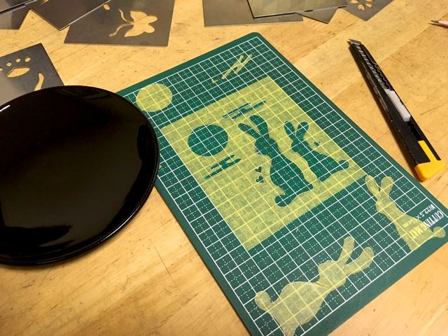 いちから自分でデザインもできますが、動物や花の型版もあるので、型に添って書けば比較的簡単に書くことができます。