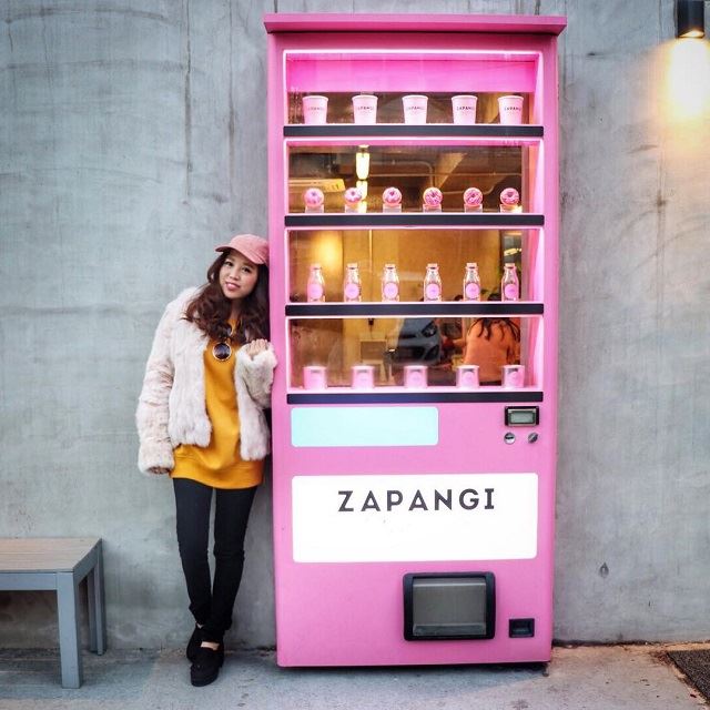 ピンクの自動販売機のような扉がInstagramなどで話題を呼んだ、ソウルの人気カフェ。