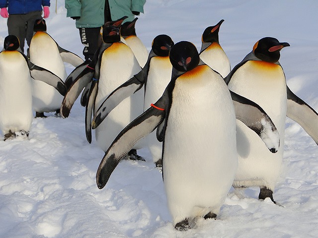 積雪時限定!今や冬の定番人気イベントとして定着している「ペンギンの散歩」。運動不足解消を兼ねてスタートしたのだそう。