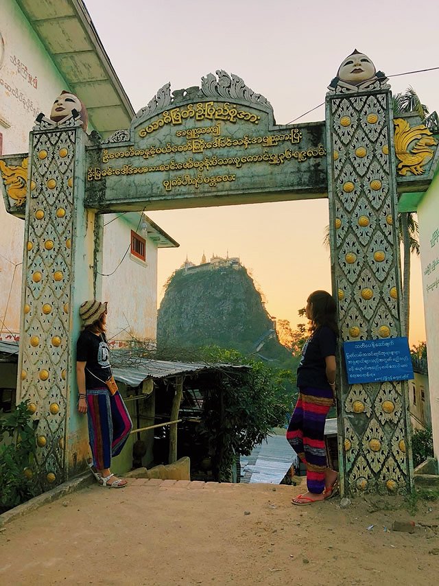 バガンの南東約50㎞に位置する標高1518mのポッパ山。山麓に見える『タウン・カラット(標高737m)』は、ミャンマーの土着信仰「ナッ神」の聖地☆