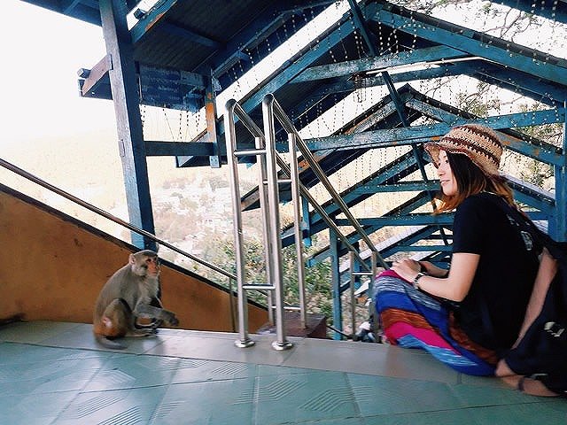 タウン・カラットは心臓破りの「777段」の階段が待ち構えています!!お猿さんが随所にいるのですが、写真のように目を合わせてはいけません(笑)
