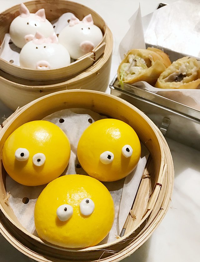 黄色はアツアツのカスタードまんじゅう。豚さんは肉まん。