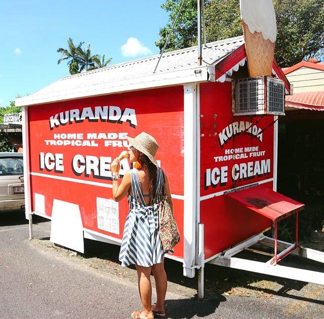 コチラはキュランダで人気のアイスクリーム屋さん!!小さな真っ赤なお店がとても可愛い~(^^)