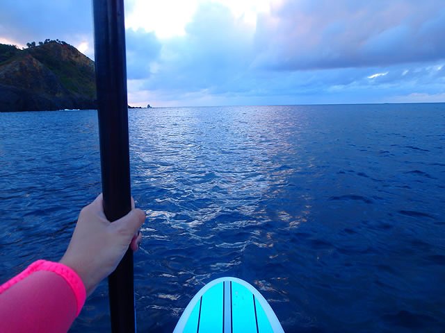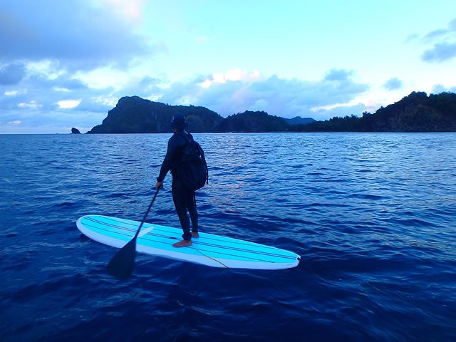 小笠原では、様々なマリンアクティビティが体験できますが、そのなかでもお勧めしたいのが、サンセットSUP!太陽が沈むそのタイミングに合わせ、穏やかな小港海岸をゆっくりと漕いでいきます。