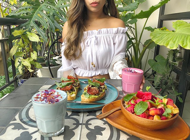 私たちはアボガドトースト、ピンクラテ、ブルーラテとアサイーボウルを頼みました。