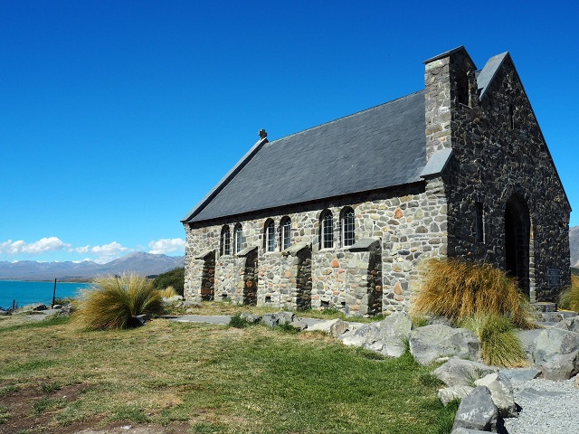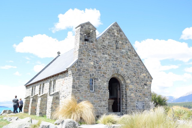 1935年建造の善き羊飼いの教会です。石造りの教会は、この辺りの開拓者のためにたてられたものです。