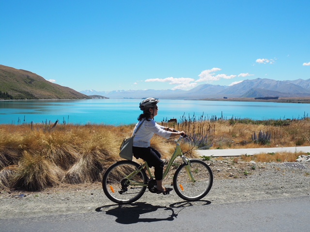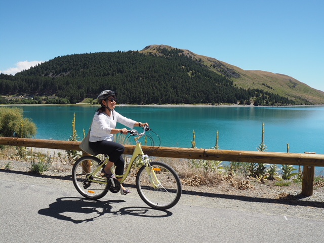 母もとても楽しそうでした♪ 自転車は二時間乗り放題で14$ 。ヘルメット着用ニュージーランドので義務なので必ず着用してください♪