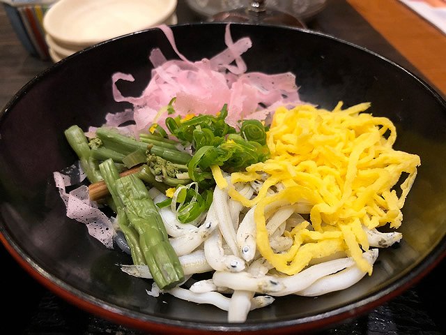 こちらも結婚式や長寿祝いなどの祝いの席で振る舞われる郷土料理。緑と白と黄色とピンクが鮮やかで視覚的に楽める料理です。味は薄めです。