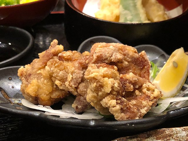 いわゆる鶏の唐揚げですが骨付き肉を用いるのが特徴的。