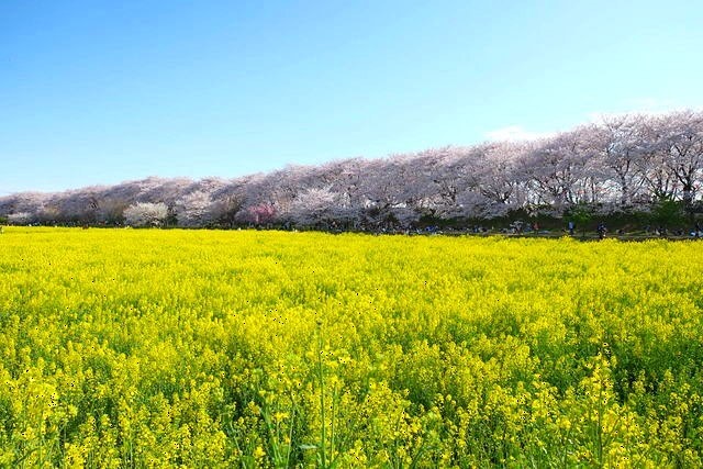 桜の名所として有名な幸手権現堂堤では、桜だけでなく四季折々のお花見を楽しめます。3月中旬~4月中旬までは、桜・菜の花のピンクと黄色のコントラストが見事です。