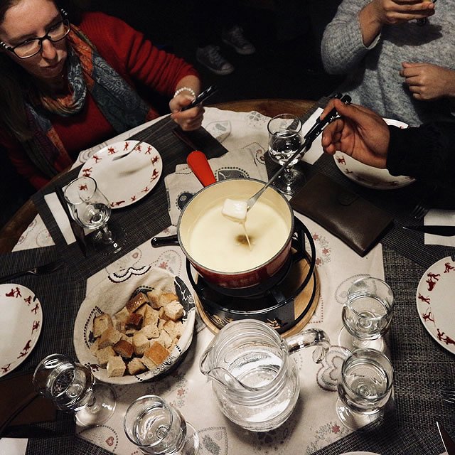 夜ご飯はみんなでチーズフォンデュを食べました♪スイスのチーズフォンデュは白ワインがかなり効いていて、高級感のある上品な大人の味!!