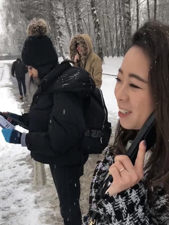 ルームメイトのラリサとキーも一緒に♪山一面が雪景色!木の種類が日本と全然違うので、日本の雪景色とはまた違う美しさでとても素敵でした!