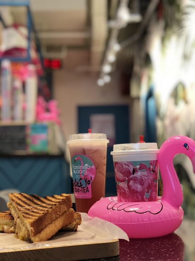 九龍半島とはまた雰囲気がガラリと変わって、大きなフラミンゴが入口で迎えてくれるflamingo Bloom。健康茶を楽しめるオシャレなカフェ