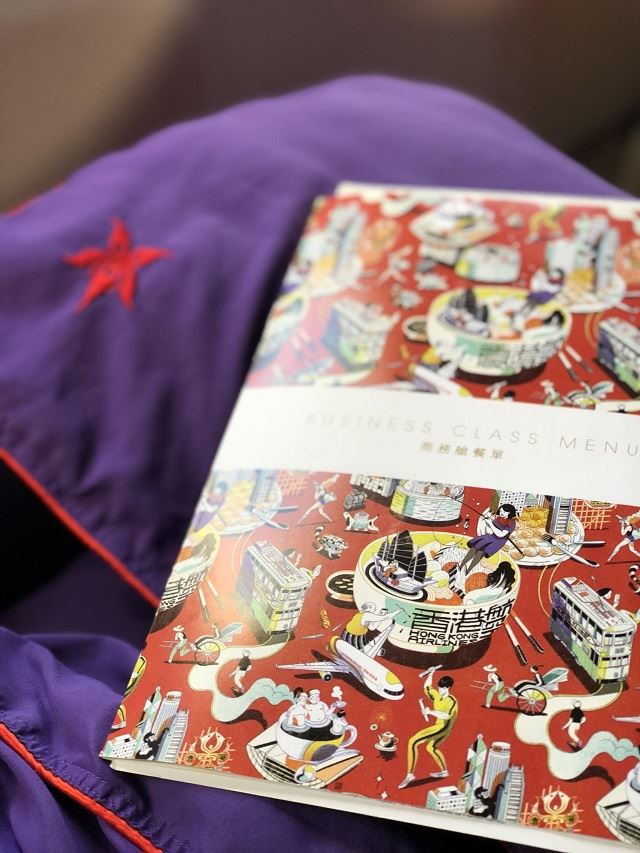 機内食メニューのイラストも香港らしさ満載。もちろんお味も美味しかったです。
