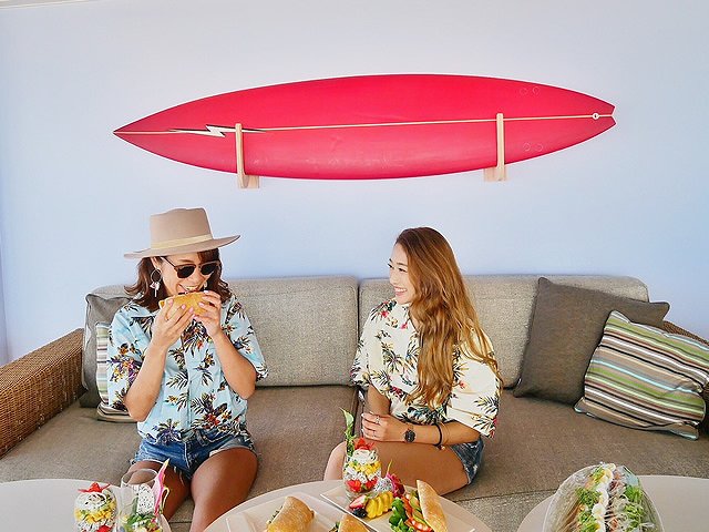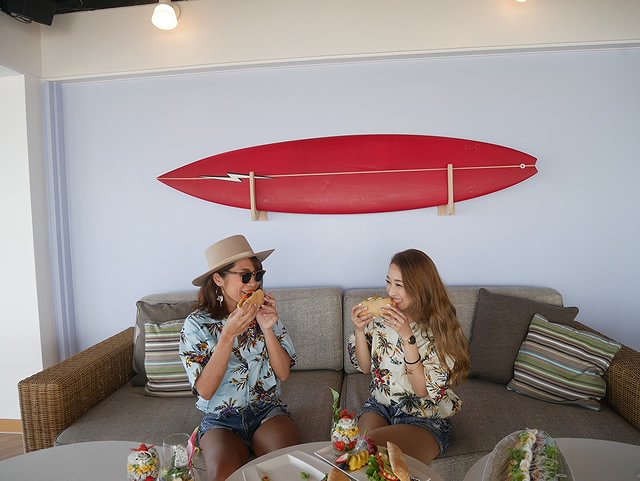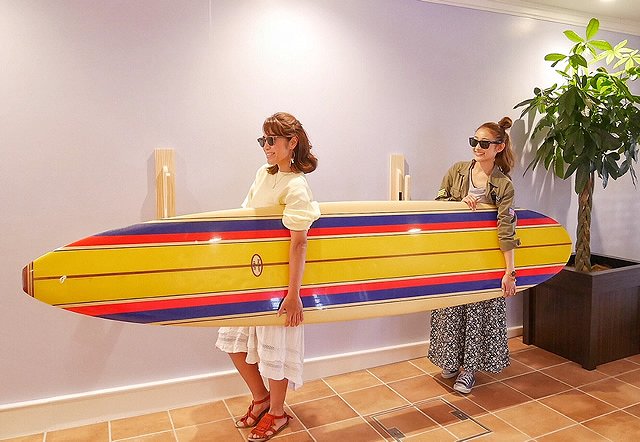 飾ってあるサーフボードで撮ってフォトジェニック。