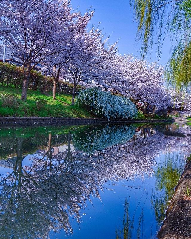 ここは、桜のシーズンには撮影スポットとしてとても人気があります 私はいつも朝に、橋の上から見ていました(2枚目は橋の上から撮影)