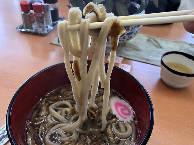 秋吉台の特産品「美東ごぼう」を麺に練り込み、さらにごぼうのから揚げを載せたごぼうづくしの地産地消のオリジナルうどんです。ごぼうの嫌な土臭さはまったくなく、ごぼう特有の豊かな香りと醤油ベースのだしが鼻孔をくすぐります!