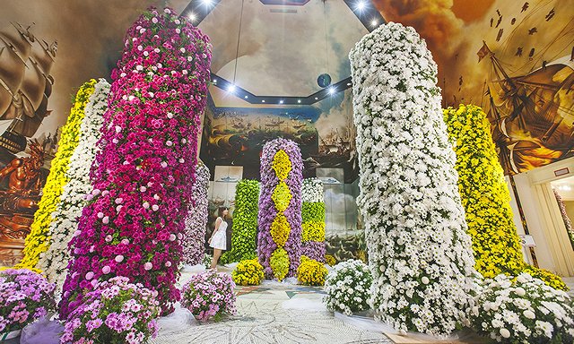 『壁画の間』には、高さ3m、一万本の美しいマム<菊>を使った巨大アート「マムの塔」が登場!色とりどりの菊のアートは圧巻です!