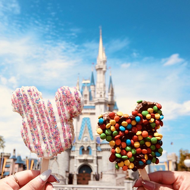 日本では見たことのないフードメニューがたくさんありました。ミッキー型のお菓子はカラフルで可愛いです!ドリンクもストローがミッキーの形になっていて可愛かったです。