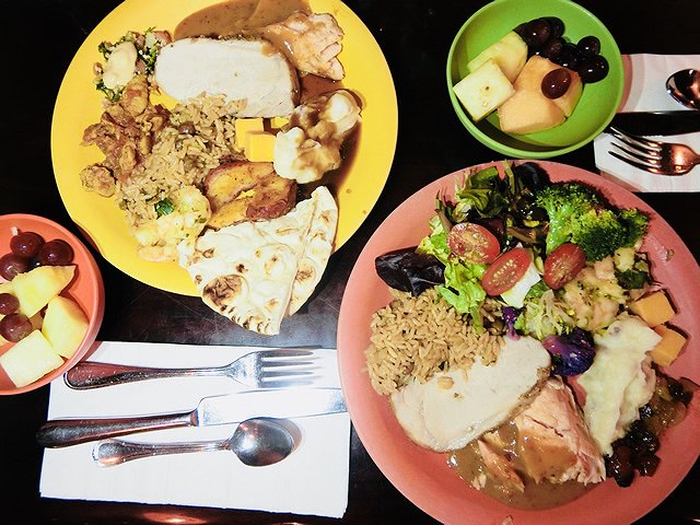 アフリカ料理中心のレストランでビュッフェ形式となっています。キャラクターと会うのに忙しくてゆっくり食べる時間もない程サービス満点のグリーティングでした!(笑)アニマルキングダムの中で一番人気のレストランみたいなのでぜひ☆