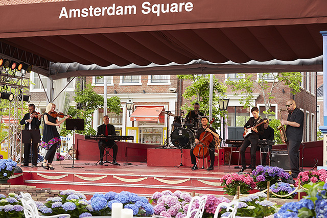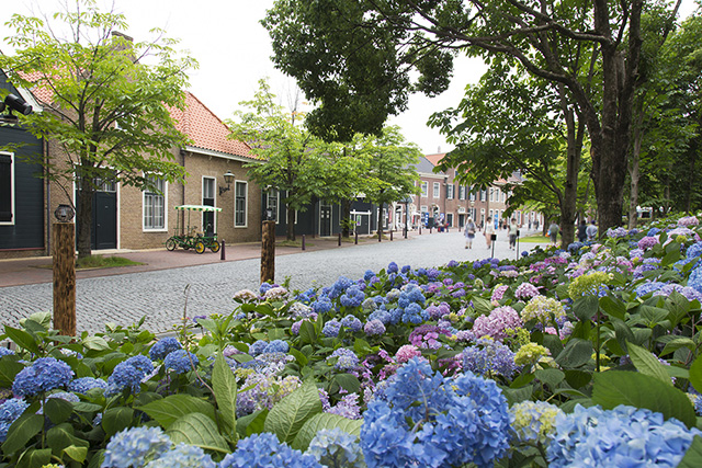 花と音楽に溢れる「アムステルダム広場」は、あじさいの鮮やかな色彩に包まれます。