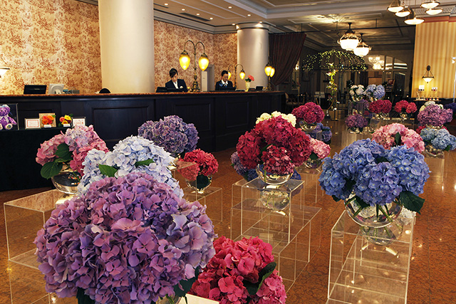 ホテルヨーロッパのロビーもあじさい一色に!