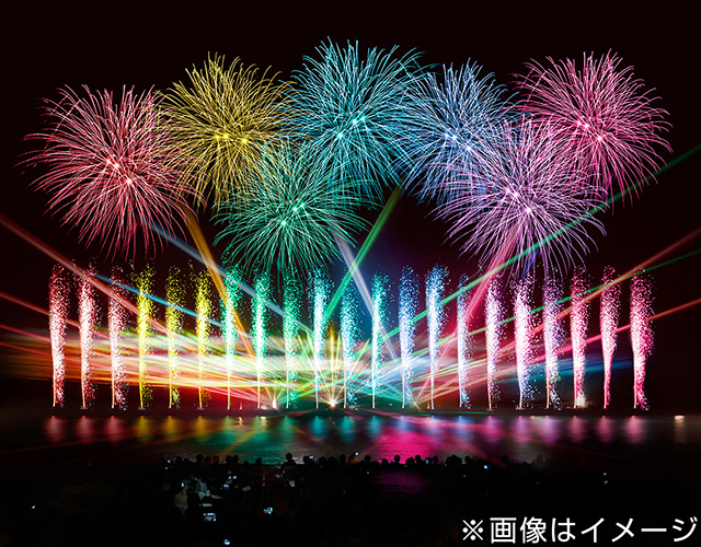 初開催!大迫力200mのレインボーカーテンがクライマックスを飾る、花火×レーザー×音楽のエンターテインメントショー!満開のあじさいとスペシャル花火で思いっきり楽しんじゃおう!