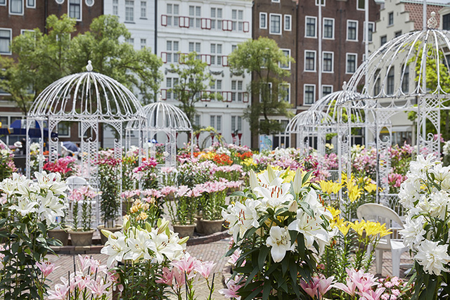 花と音楽に溢れるアムステルダム広場に「ゆりの広場」が登場!さまざまな種類のゆりが楽しめます。