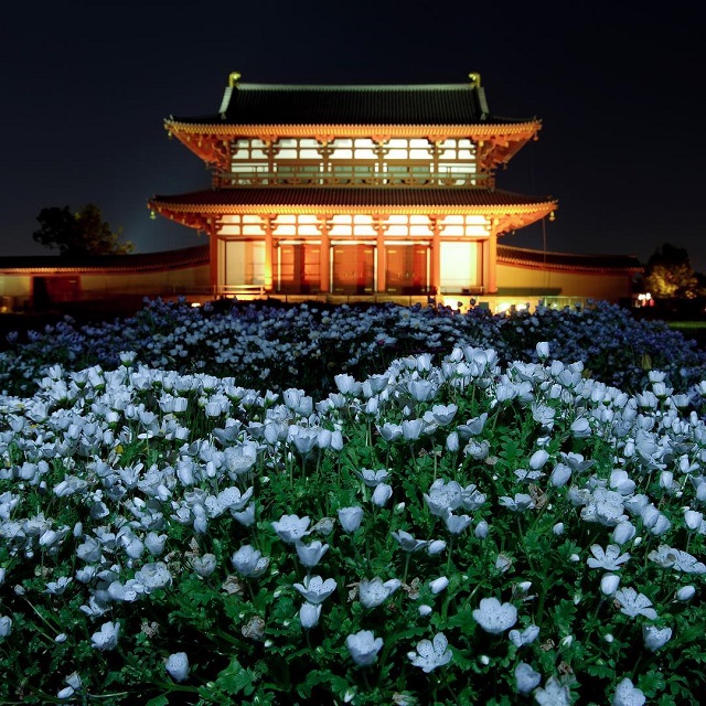 写真提供:@i_masanaoさんご本人コメント(抜粋) 平城宮跡 ネモフィラ朱雀門 白vr