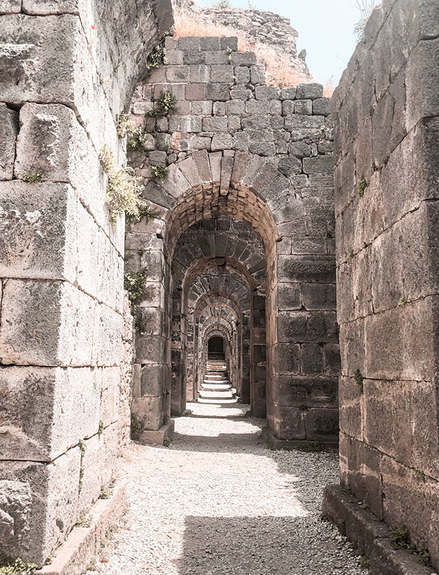 大劇場に行く途中には見事なアーチ回廊もあり、インスタ映え間違いなし!標高約335mに位置するアクロポリス遺跡にある大劇場は、傾斜は古代遺跡の劇場の中でも一番急な劇場。