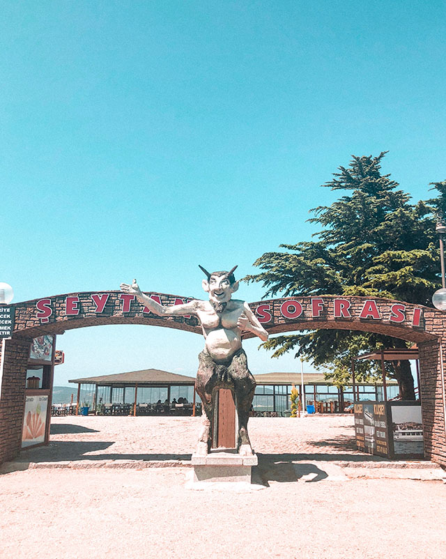 シェイタンソフラス=悪魔の食卓という意味でレストランの入り口では悪魔のオブジェがお出迎え!