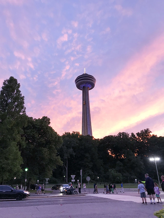 夕焼けも美しい…!ナイアガラの街全体がピンク色に染まっていました。